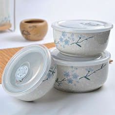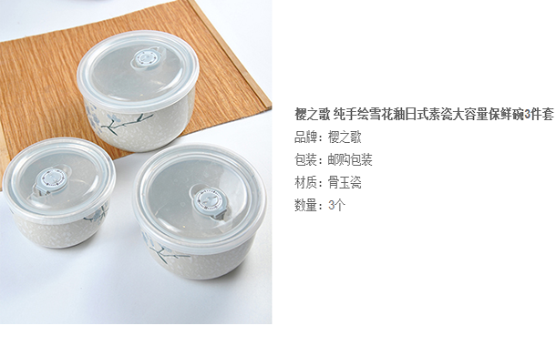 樱之歌 纯手绘雪花釉日式素瓷大容量保鲜碗3件套