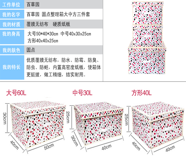 百草园 无纺布收纳箱 大号中号方形三件套 圆点